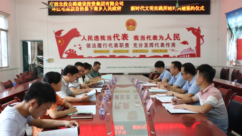 圖為北投公路集團與下南鄉(xiāng)人民政府舉行新時代文明實踐所結對共建簽約儀式現(xiàn)場