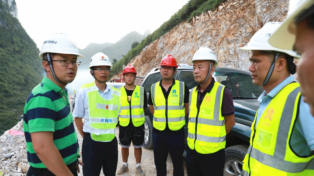 9月24日,自治區(qū)公路發(fā)展中心主任馮永平到S211、S305都安下坳經(jīng)龍頭至拉烈公路(以下簡(jiǎn)稱(chēng)“都拉路”)調(diào)研指導(dǎo)工作,河池公路發(fā)展中心主任羅世斌,北投公路集團(tuán)黨委書(shū)記、董事長(zhǎng)張?jiān)婆阃{(diào)研。