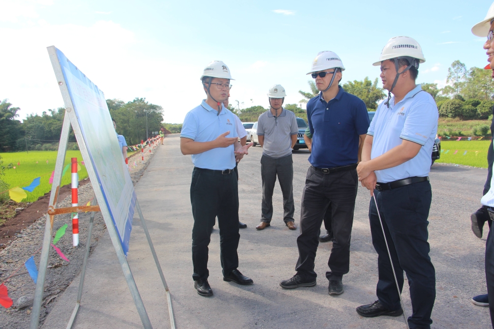北投公路集團累計承接自治區“四建一通”工程31個,現已完工10個,在建項目21個。位于桂東片區的桂興路全長約65.44公里,其中約40.28公里屬于“四建一通”路段。陸曉明一行深入桂興路現場,沿項目主線進行實地調研,重點了解項目建設基本情況、存在困難及需要協調解決問題,并就“四建一通”路段的建設及項目用地報批工作進行探討。期間,陸曉明關切詢問了項目的用地報批措施和工作進展,張云表示,北投公路集團已針對項目用地報批工作成立專班領導小組并制定工作清單,確保按時間節點完成用地報批手續辦理。