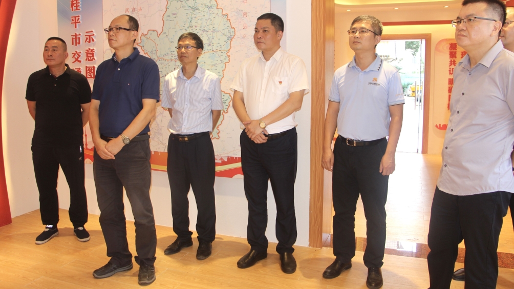 圖為陸曉明(左二)參觀桂平“公路交通先鋒矩陣”黨建創新品牌展示廳現場