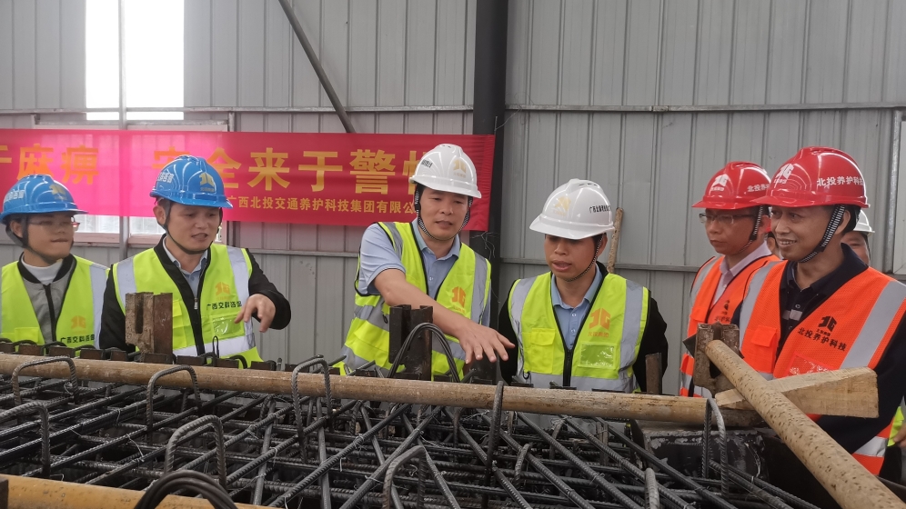 李祖繁一行深入古漏關立交橋、危舊橋梁改造工程南寧片區鋼筋加工場、大梁預制場以及拆橋現場實地考察,在聽取項目負責人關于危舊橋梁改造工程當前項目建設情況匯報后,對項目標準化建設工作給予了肯定。