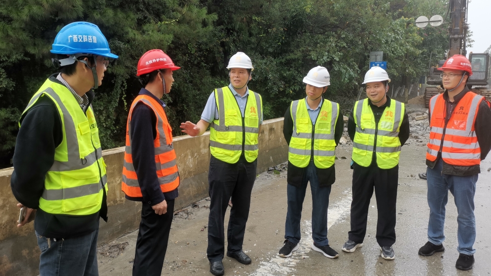 11月4日,北投公路集團黨委副書記、副董事長、總經理李祖繁一行到南寧片區2021年廣西普通國省干線公路危舊橋梁改造工程項目調研檢查,重點檢查了項目施工進度、施工質量安全及內業資料的完善等方面,并指出要管好、養好危舊橋梁改造工程項目,打響北投公路養護工程品牌。