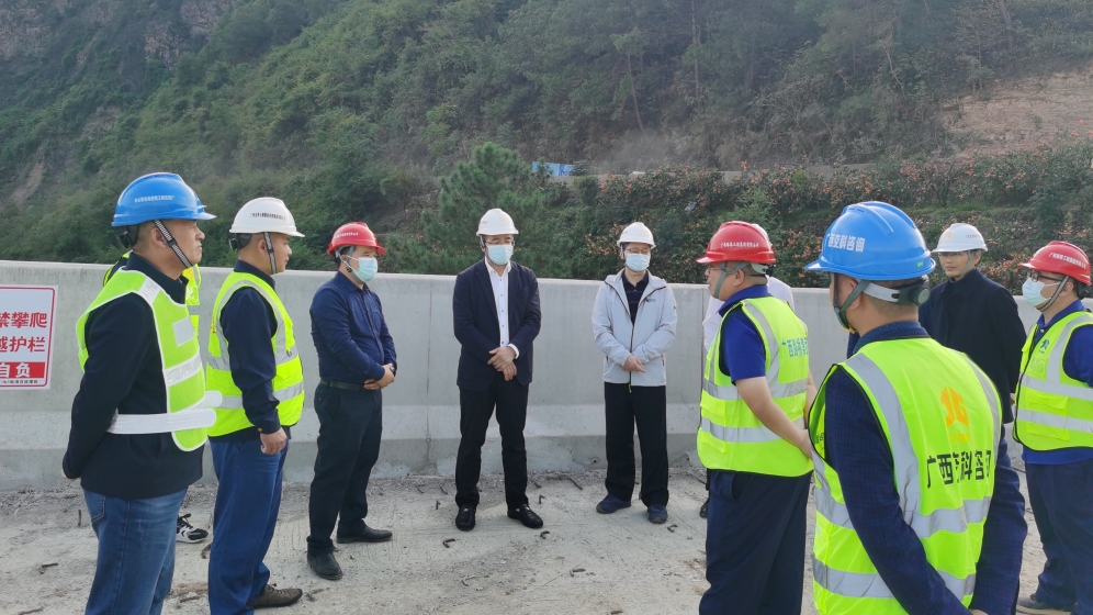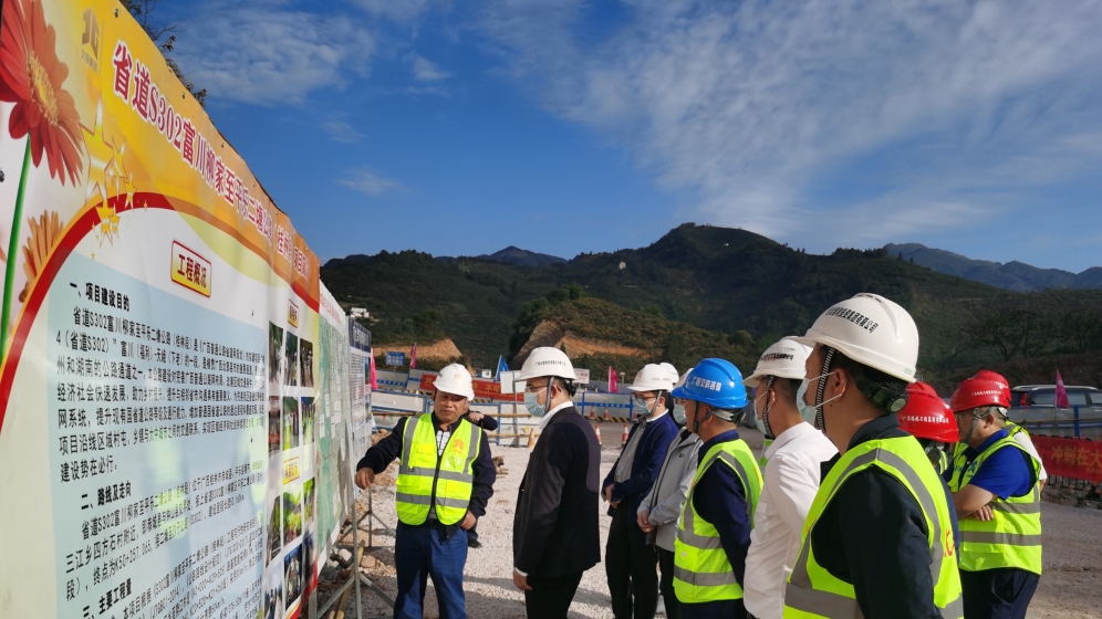 11月11日,北投集團黨委委員、副總經理李德智到北投公路集團S302富川柳家至平樂二塘公路(桂林段)(以下簡稱富平路)調研安全生產管理工作。北投集團安全環保監督部部長黃宏飛、法律合規部副部長韋慶松,北投公路集團黨委委員、副總經理呂良珍陪同調研。