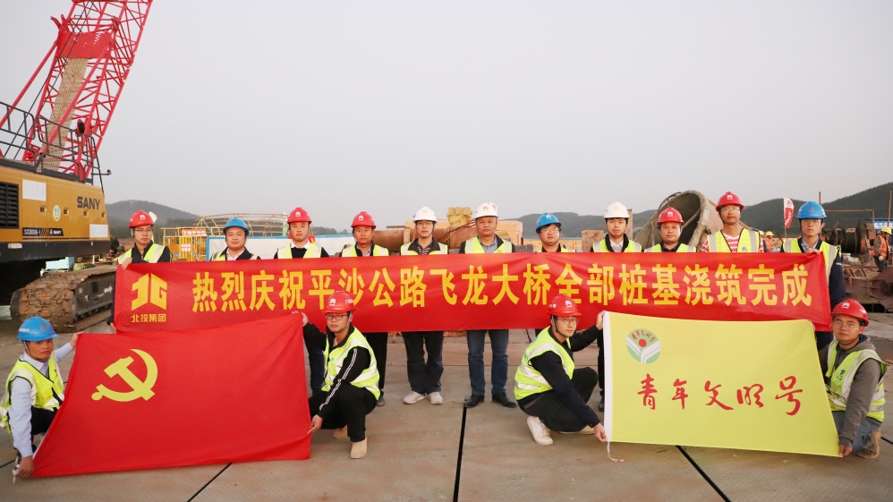 圖為飛龍大橋全部樁基澆筑完成合影現場