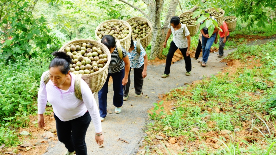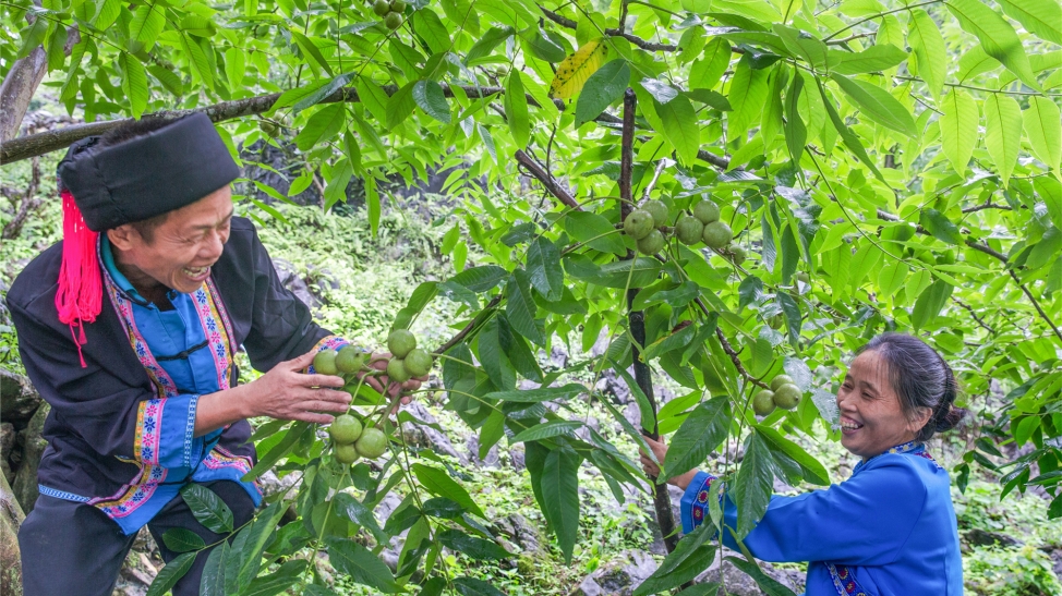 弄者村村民采摘核桃
