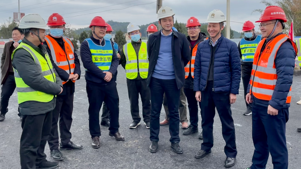 1月18日,自治區交通運輸廳副廳長、黨組成員胡華平到北投公路集團承接的2021年廣西普通國省干線公路危舊橋改造工程桂東片區大石新橋項目調研指導工作,玉林市交通運輸局局長李世亮,玉林公路發展中心主任羅克文,集團公司副總經理、總工程師陳釗參加調研。