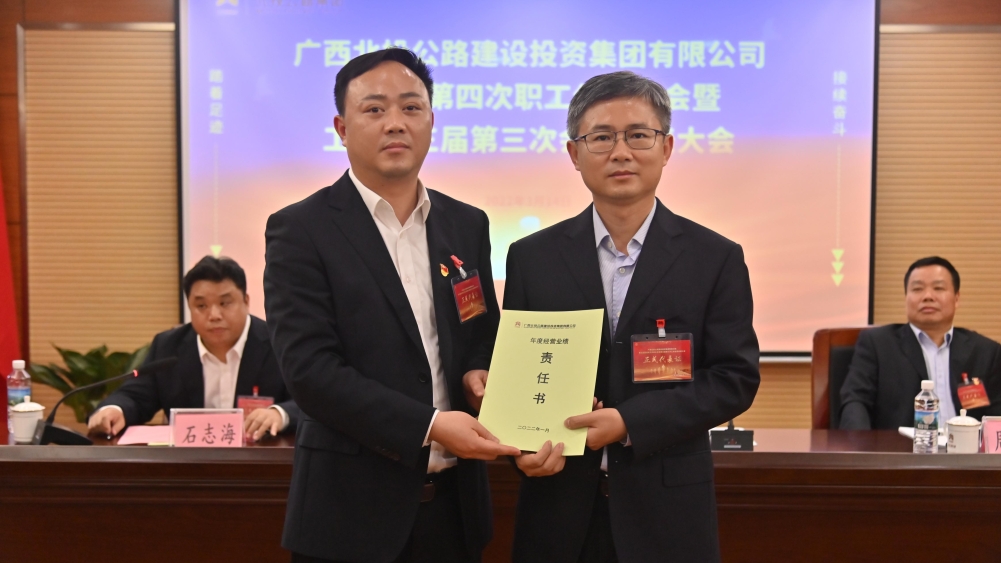 報告指出,在北投公路集團成立十周年、企業開啟集團化管理運作的關鍵之際,北投公路集團實現了發展速度最快、發展質量最優、發展效益最強:一是抓戰略謀布局,發展思路更加清晰。堅持以戰略驅動成長,以目標引領航向,在提交“十三五”硬核答卷的基礎上,集團公司完成了“十四五”規劃編制,確立了“1235”奮斗目標。二是抓經營拓好局,發展效益更加凸顯。2021年累計完成投資71.2億元,占年度責任目標的110%,同比增長26%,各項指標均實現穩步增長;企業經濟運行持續向好,在自治區國資委對北投集團重要子企業排名中名列前茅,位列第4名,在2021年度經營業績考核結果中獲評A級。三是抓項目穩大局,發展基礎更加堅實。全年實現6個“四建一通”項目建成通車、24個鄉鎮通達,通車里程達346公里,4個項目通過竣工驗收且評定等級均為優良;2020年廣西普通國省干線公路“先養后補”工程21個項目、自治區公路發展中心委托的25個站點50個雙槍充電樁的建設任務全部完工,年度國省道138座危橋改造項目基本完成。四是抓轉型逆戰局,發展前景更加廣闊。跳出企業看市場、立足主業找產業,逐步從單一的路網建設投資,向路網建設及養護投資與路網衍生資源投資運營并舉轉變,全力重構企業業務布局。五是抓管理迎變局,發展效能更加優化。依托“智慧路網一體化平臺”管理系統,梳理、整合各項管理制度和工作流程,重塑企業管理架構,大力實施制度流程化、流程表單化、表單信息化的“三化工程”,在北投集團內部成功樹立起數字化管理企業的優秀典型。六是抓改革破僵局,發展動能更加強勁。全面推行規范董事會建設,實現外董數量大于內董;圍繞完善企業合規內控體系及企業提質增效等目標,完成高層管理人員及直屬企業負責人的任期制和契約化管理;出臺《經營業績考核管理辦法》,合理拉開員工收入差距,修訂《薪酬管理辦法》,制定管理人才和技術人才“雙通道”體系。七是抓科技創新局,發展活力更加迸發。研發投入占比保持3%以上,新增國家高新技術企業1項、省部級科技獎1項,發布指南1項,獲授權發明專利2項、實用新型5項,新增立項科研項目4項;修訂《科技創新管理辦法》,科技創新人才隊伍建設實現新突破;同類橋型世界第一跨飛龍大橋《超大跨徑組合折腹梁橋建造與養護關鍵技術研究》列入2021年度廣西交通運輸科技示范工程項目,《公路波形鋼腹板預應力混凝土梁橋設計指南》列入廣西交通運輸行業指南。八是抓黨建統全局,發展根基更加穩固。全年累計獲得各級黨工團類榮譽56項,獲獎數量為歷年之最,集團公司黨委獲評“公路交通行業先進基層黨組織”及自治區國資委黨委系統“先進基層黨組織”;援建毛南族特色寨門及修建鄉道村道,推進黨史學習教育走實與創新并舉;“1+N”品牌集群新高地孵化成型,“公路黨旗紅”黨建文化品牌在全國218個文化品牌中脫穎而出,獲評“企業類十佳文化品牌”“十佳宣講人”,品牌同時獲評自治區直屬企業2021年度黨建品牌優秀案例。