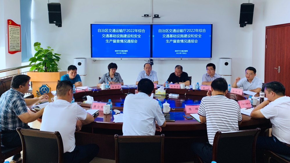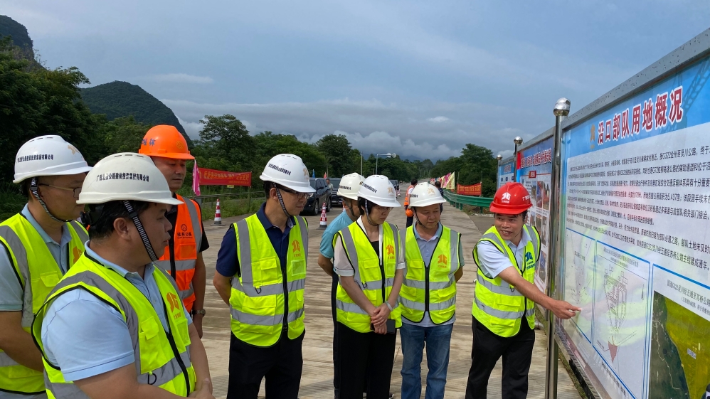 7月5日、6日、8日,自治區交通運輸廳副廳長陸曉明帶隊到北投公路集團桂林片區國道G322靈川經五通至蘇橋公路(以下簡稱靈蘇路)、S501全州石塘經蕉江至高尚公路(全州段)(以下簡稱全高路)開展綜合交通基礎設施建設和安全生產督查工作。自治區公路發展中心副主任陶有成,桂林公路發展中心主任蔣小欽,全州縣常務副縣長唐基恒、副縣長伍吉東,集團公司黨委書記、董事長張云,集團公司黨委委員、副總經理石志海,路建集團副總經理劉海林等參與督查。
