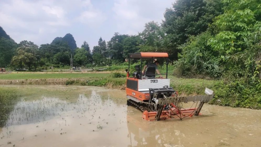 圖為南丹“旱改水”項(xiàng)目一期第一批水稻開栽