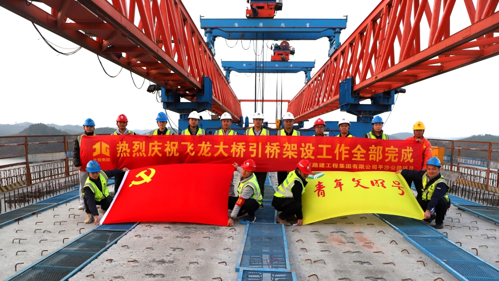 12月12日,伴隨著架橋機的轟鳴聲,飛龍大橋引橋沙坪側最后一片30m預應力混凝土T形結構梁緩緩落在橋墩上。至此,飛龍大橋完成全部72片T梁架設工作,為實現全橋合龍打下堅實基礎。