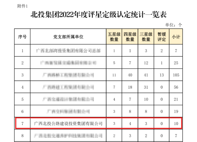 圖為北投集團(tuán)2022年度評(píng)星定級(jí)認(rèn)定統(tǒng)計(jì)一覽表