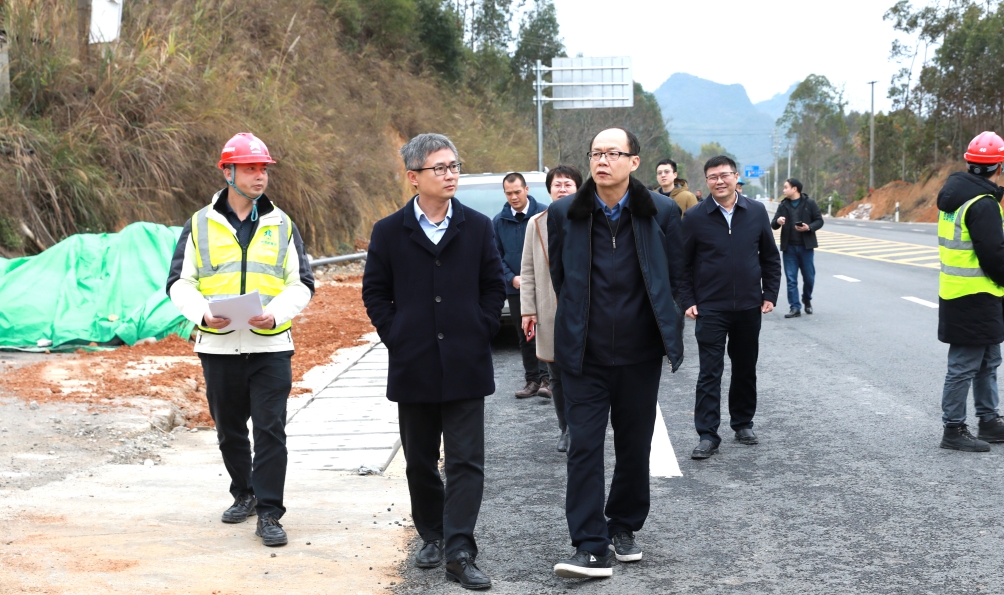 2月7日,自治區(qū)交通運(yùn)輸廳黨組成員、副廳長(zhǎng)陸曉明率檢查組到北投公路集團(tuán)省道S507宜州三岔至流山公路(以下簡(jiǎn)稱“宜山路”)開展復(fù)工復(fù)產(chǎn)安全生產(chǎn)工作檢查,自治區(qū)公路發(fā)展中心副主任陶有成,集團(tuán)公司黨委書記、董事長(zhǎng)張?jiān)茀⑴c檢查。