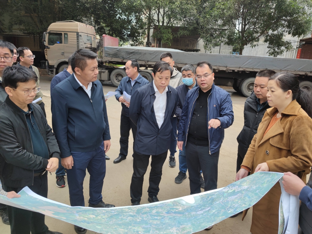 2月24日上午,南寧市委常委、市委宣傳部部長趙勇富率隊到北投公路集團南寧片區S514江西至壇洛公路項目(以下簡稱“江壇路項目”)調研并開展征拆工作推進會。西鄉塘區委常委、宣傳部部長、政府副區長黃枝滔,江南區委常委、宣傳部部長廖知啟,北投公路集團副總經理、總法律顧問陶亮等參加調研。