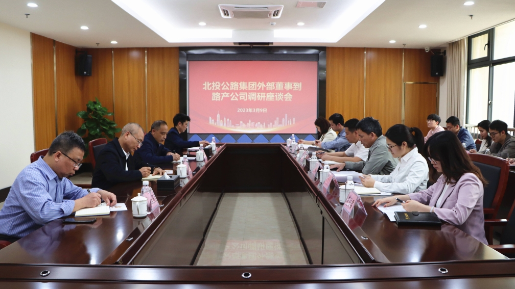 3月9日,北投公路集團外部董事吳文佐、邱文輝、高桂強、龍志一行到集團公司直屬企業路產公司調研,北投公路集團黨委副書記、副董事長、總經理李祖繁主持會議。
