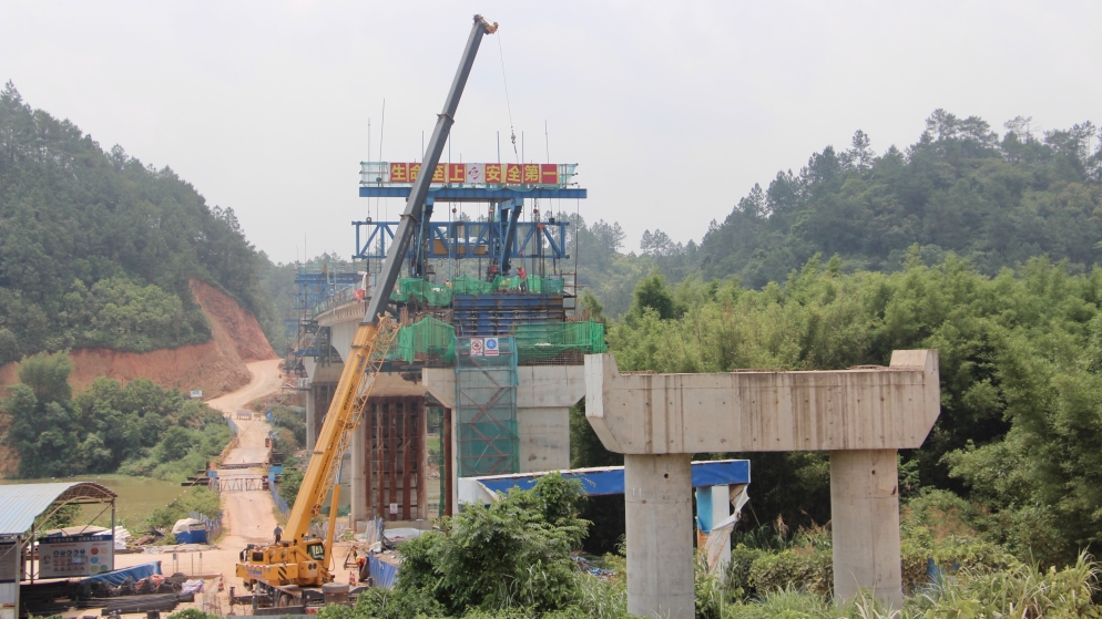 圖為岑平路北流河大橋主橋施工現(xiàn)場(chǎng)