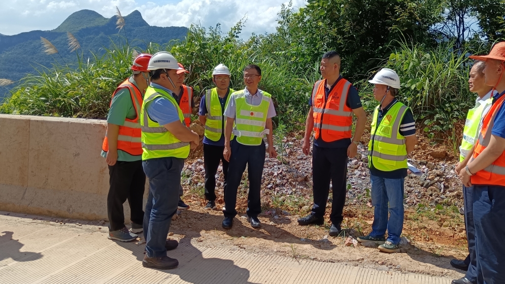 6月28日下午,自治區(qū)公路發(fā)展中心主任馮永平帶隊(duì)到北投公路集團(tuán)桂林片區(qū)灌潮路現(xiàn)場檢查水毀情況。桂林公路發(fā)展中心主任蔣小欽,集團(tuán)公司黨委委員、副總經(jīng)理石志海及各參建單位現(xiàn)場主要管理人員參加此次檢查。