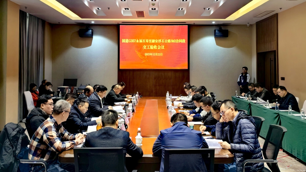 圖為國道G357永福百壽至融安浮石公路№2合同段交工驗收會議現(xiàn)場