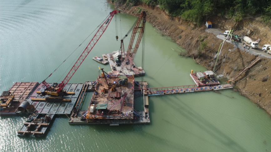 7月30日,北投公路集團(tuán)投資建設(shè)的國道G357田林經(jīng)八桂至定安公路八渡三橋首根深水樁基順利灌注施工。