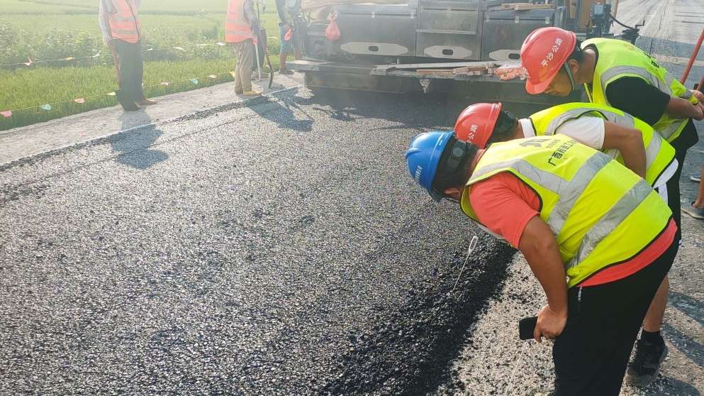 9月19日下午,正值中秋佳節節假日,平沙路項目管理人員、施工建設人員堅守在建設壯美廣西的第一線,力爭提前完成自治區下達的“四建一通”建設任務。在現場工作人員的不懈努力下,順利完成平沙路AC-20C瀝青混凝土下面層試驗段鋪筑。