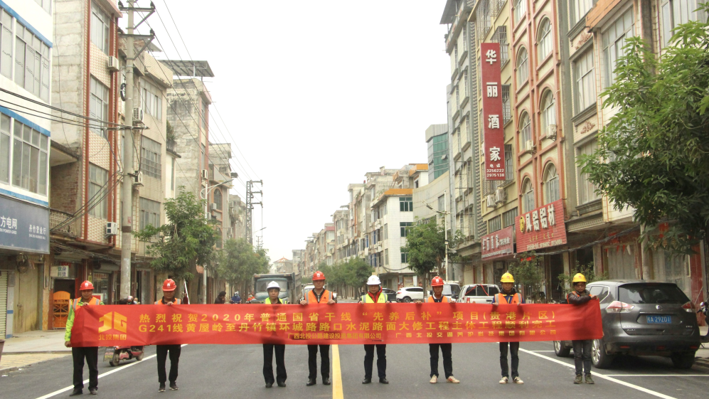 G241線黃屋嶺至丹竹鎮環城路路口水泥路面大修工程是2020年廣西普通國省干線“先養后補”項目,全長4公里,于2021年10月8日正式開工建設,經過97個日夜的努力奮戰,于2022年1月8日實現主體工程全部完工,于1月13日正式投入使用。