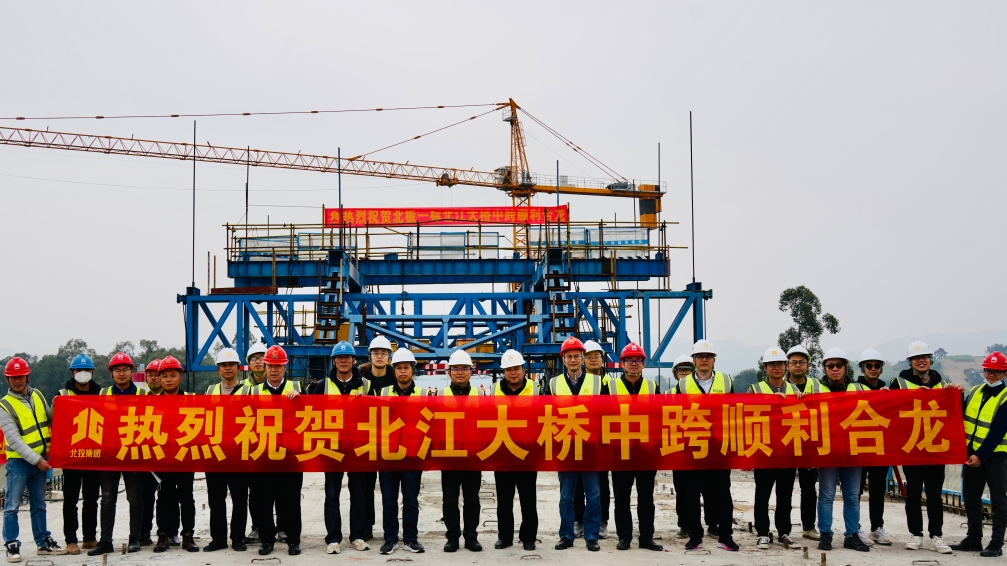北江大橋合龍段澆筑前,針對因受疫情影響原材料進場困難、惡劣天氣嚴重影響施工進度、橋梁施工精度要求高、安全風險高,及臨電、臨水、高空、地質條件復雜、場地受限等重難點問題,建設辦超前謀劃、精心組織,通過優化施工方案、嚴格控制每道施工流程、技術人員全程跟蹤等舉措,嚴格監控施工溫度、合龍段軸線偏位等要點,堅持“黨建引領在一線”的理念,帶領北板路全體參建人員奮戰一線、發揚迎難而上、攻堅不畏難的工作精神,統一思想、統一步調,全力以赴做好各項工作,最終實現了北江大橋中跨順利合龍。