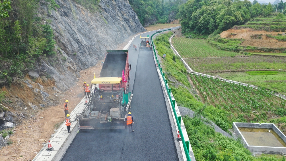 5月24日,北投公路集團河池片區省道S303南丹大廠至吾隘公路(以下簡稱大吾路)瀝青上面層正式攤鋪,標志著大吾路路面施工進入決戰沖刺階段。