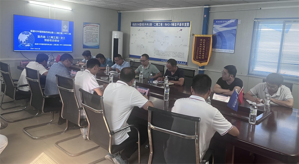 在富丹路(二期工程)交工預驗收檢測總結會上,預驗收各小組分別總結了檢測情況及存在問題,并對下階段整改工作提出明確要求和安排。會議要求各參建單位要統一思想形成工作合力,嚴格按照時間節點認真履職,抓細抓實,按期完成整改落實,做好交工驗收前準備工作,確保項目順利通過交工驗收。