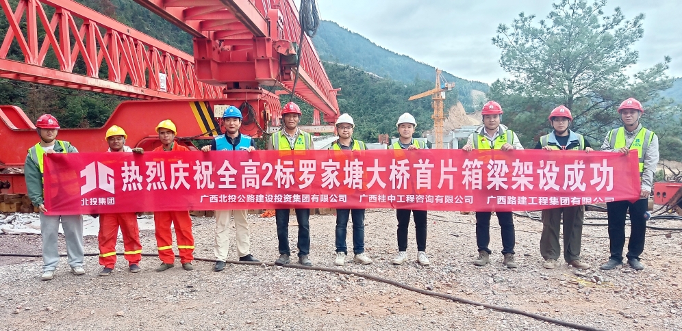 10月10日上午,桂林片區(qū)所轄全高路(興安段)項(xiàng)目羅家塘大橋首片40米箱梁順利架設(shè)。