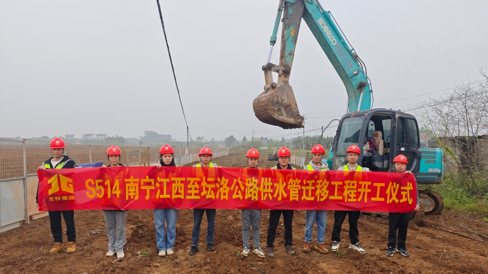 人勤春早爭朝夕,揚帆奮進正當時,3月16日,伴隨著現場施工機械的轟鳴聲,由路產公司參與實施建設的S514南寧江西至壇洛公路供水管遷移工程項目正式進入實質性施工階段。